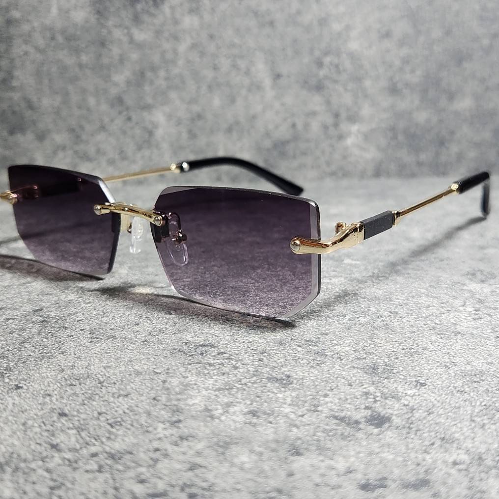 サングラス グレー UVカット 高品質 男女兼用 リムレス グラサン