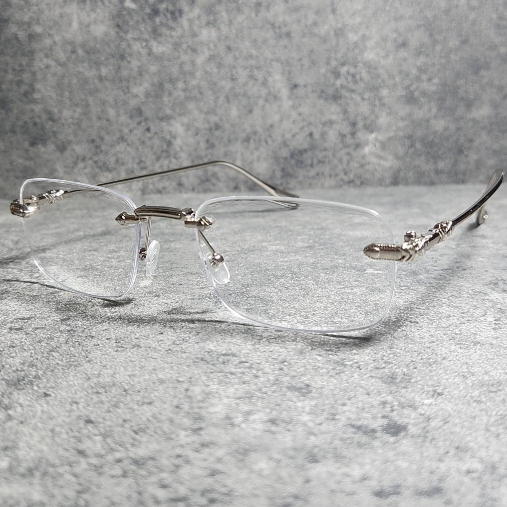 サングラス リムレス UVカット 高品質 男女兼用 ボストン ウェリントン シルバー クリア