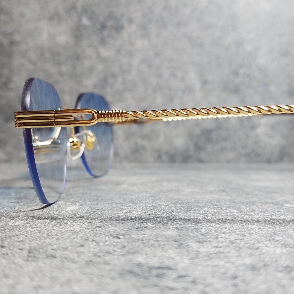 サングラス リムレス ブルーグラデーション UVカット 高品質 男女兼用 ボストン ウェリントン