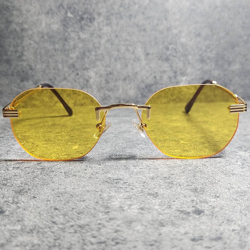 サングラス リムレス イエロー UVカット 高品質 男女兼用 ボストン ウェリントン