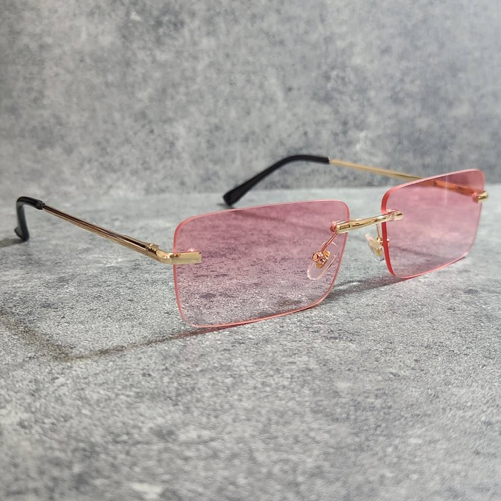 サングラス UVカット 高品質 男女兼用 リムレス グラサン ピンクグラデーション 韓国 ファッション