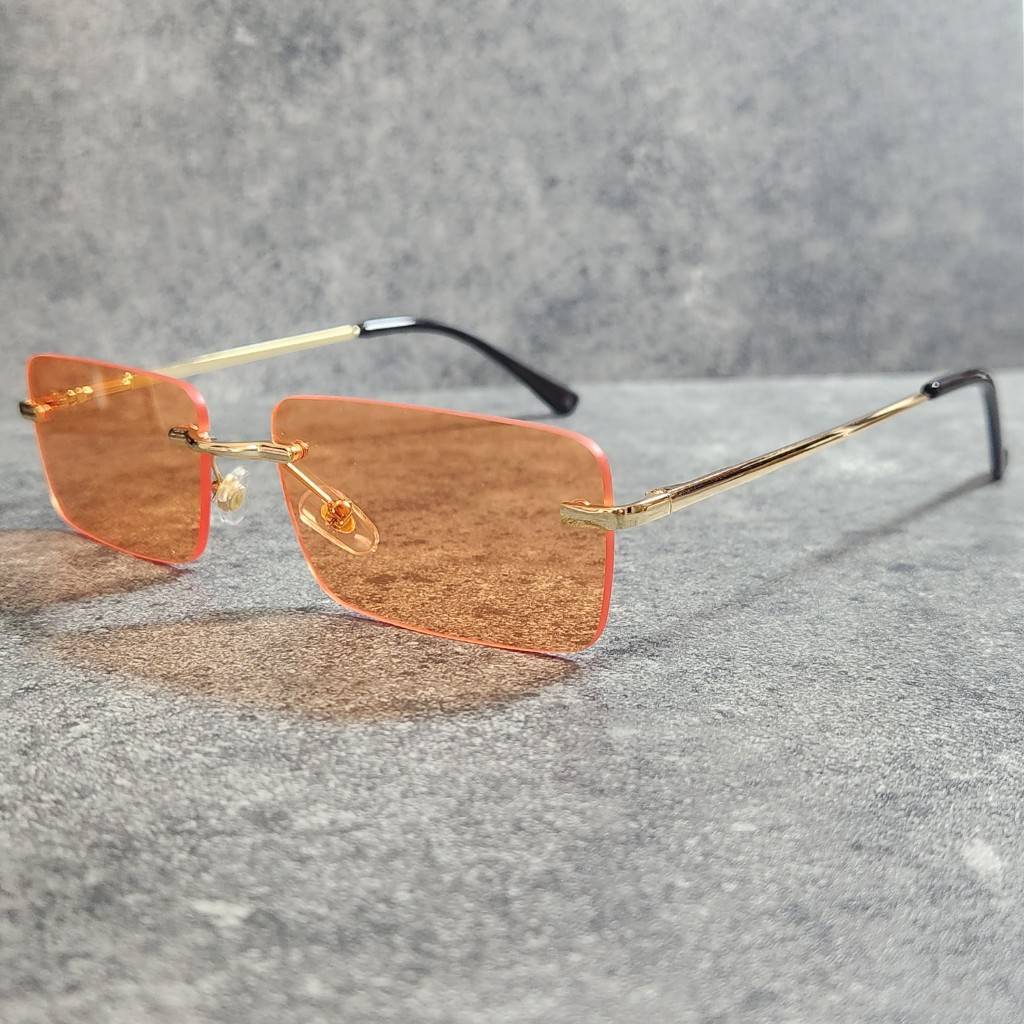 サングラス UVカット 高品質 男女兼用 リムレス グラサン オレンジ 韓国 ファッション