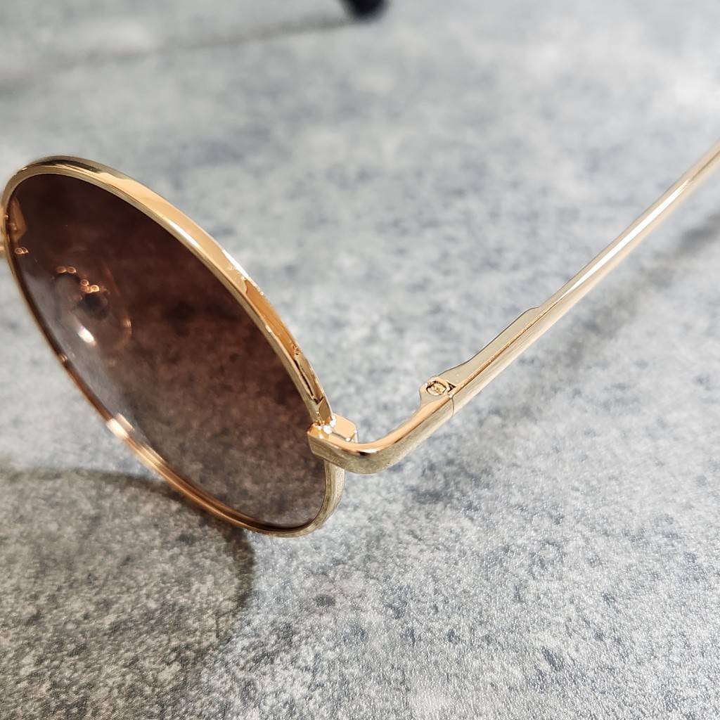 サングラス UVカット 高品質 男女兼用 ラウンド型 ブラウングラデーション