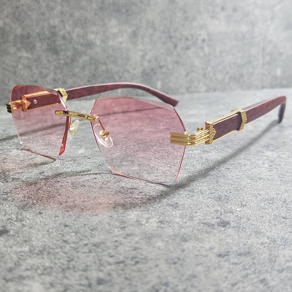 サングラス UVカット 高品質 男女兼用 リムレス グラサン 韓国 ファッション ピンクグラデーション