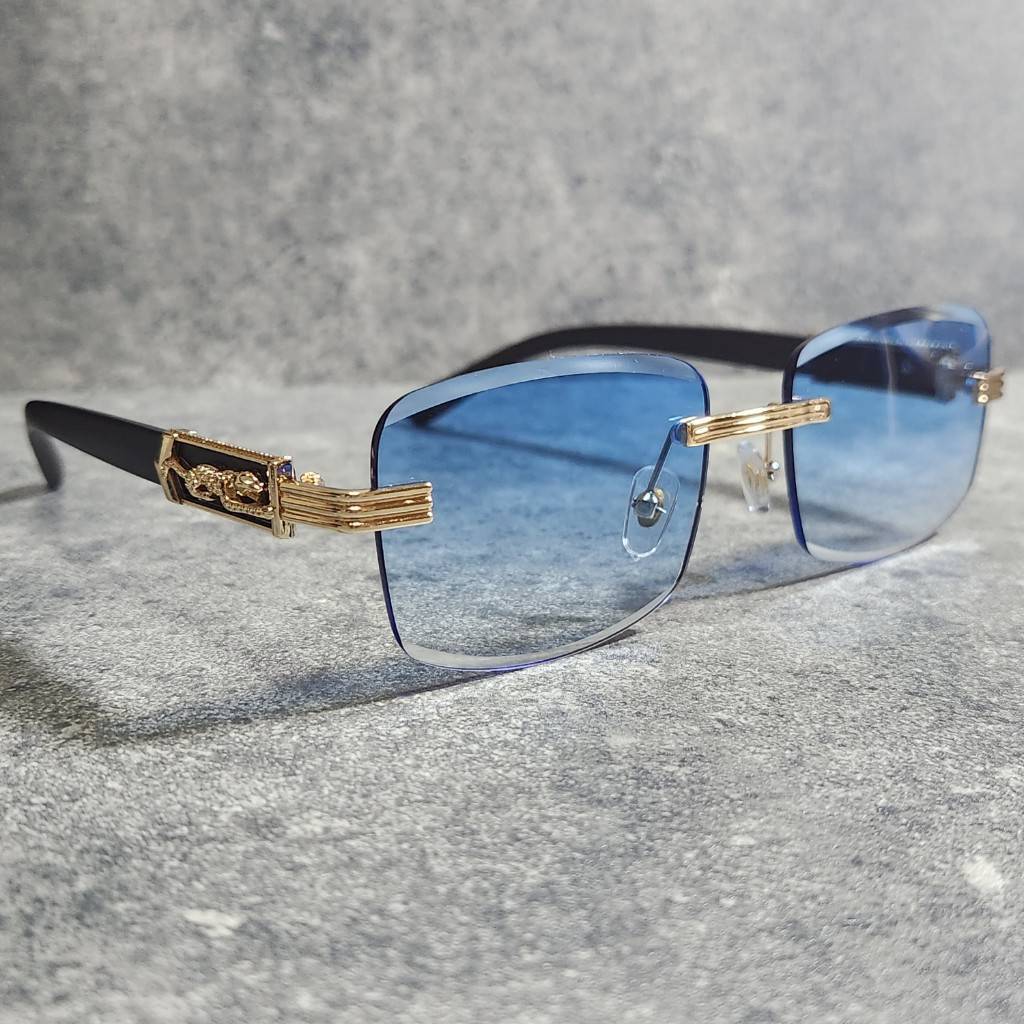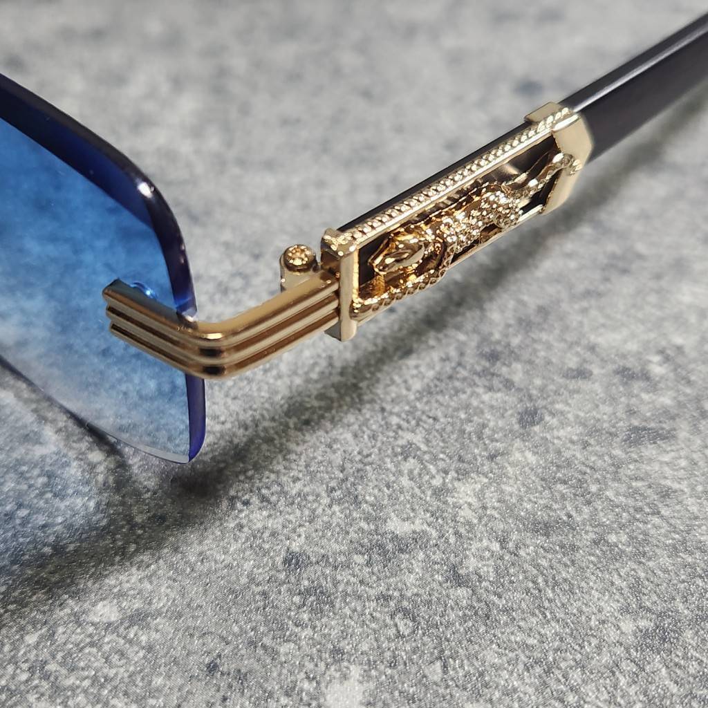 サングラス UVカット 高品質 男女兼用 リムレス グラサン ブルー 韓国 ファッション