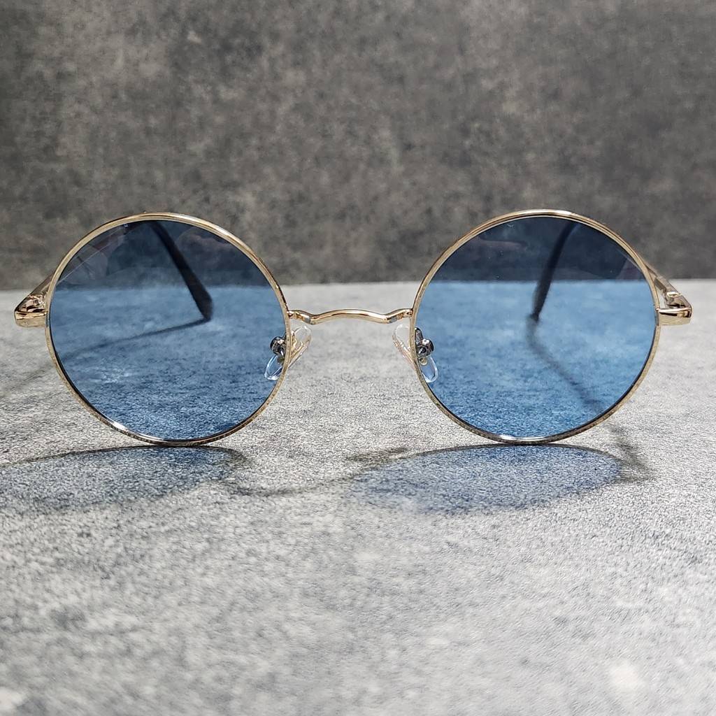サングラス UVカット 韓国 男女兼用 ラウンド ブルー